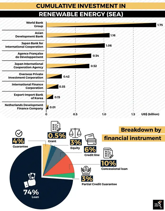 Japan has invested more than USD1.5 billion in hydroelectric, solar and wind power projects in the ASEAN region since 2009, while the Export-Import Bank of Korea has invested USD150 million in renewable energy in Southeast Asia from 2009-2016, the Post says.